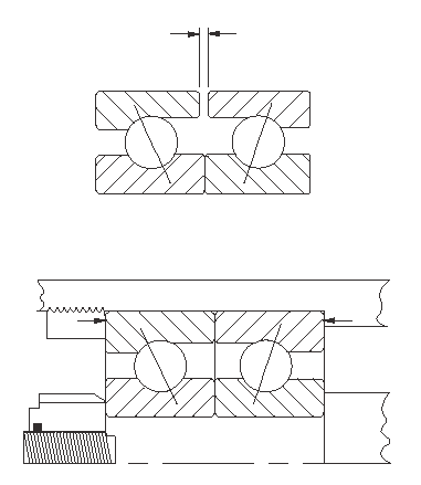 A duplexed pair can be used to provide accurate shaft location, to increase capacity or to increase stiffness of the bearing assembly. A duplex pair of thin section ball bearings is ground so that when mounting using recommended fits, there will be no internal clearance in the bearings.
